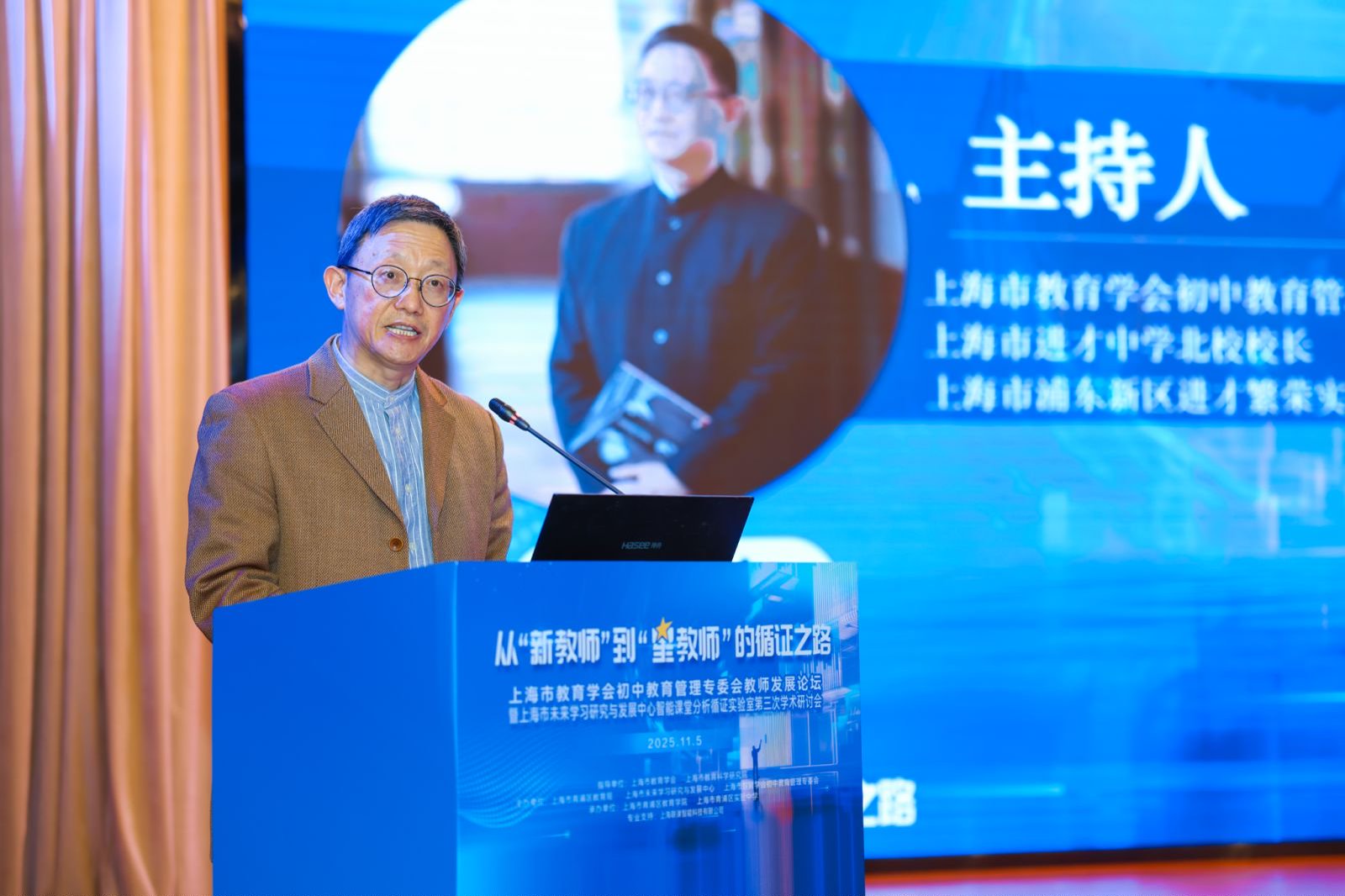 尹后庆在讲话中围绕“以人工智能赋能教育的循证实践与教师专业成长”这一主题,阐述了三个核心观点: 第一,新教师是教育高质量发展的基石。他提到上海近年招聘的新教师学历高、来源广,强调应关注其职业成长初期的精神底色与专业素养培育,使其成为推动课堂变革的关键力量。 第二,课堂是教师专业成长的核心场域。他回顾了顾泠沅在青浦倡导的“以课例为载体”的行动教育模式,指出应通过集体课例研磨与技术支持,帮助教师在课堂实践中突破成长瓶颈,实现教学相长。 第三,强调循证实践是青浦经验的重要方法论。他指出人工智能为课堂过程性评价提供了新路径,能够追踪学生学习轨迹,助力教师从经验型教学转向科学循证的教学改进,从而提升专业行动力。 他呼吁建立教师成长共同体,通过微观层面的持续改进推动教育实质性变革,并寄语新教师成长为未来的“星教师”,成为推动教育发展的燎原星火。